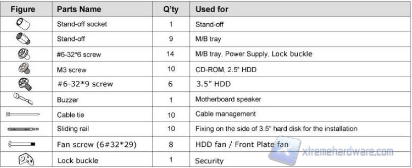 - un sacchetto in plastica contenente un buon numero di viti e distanziatori, anche se contati